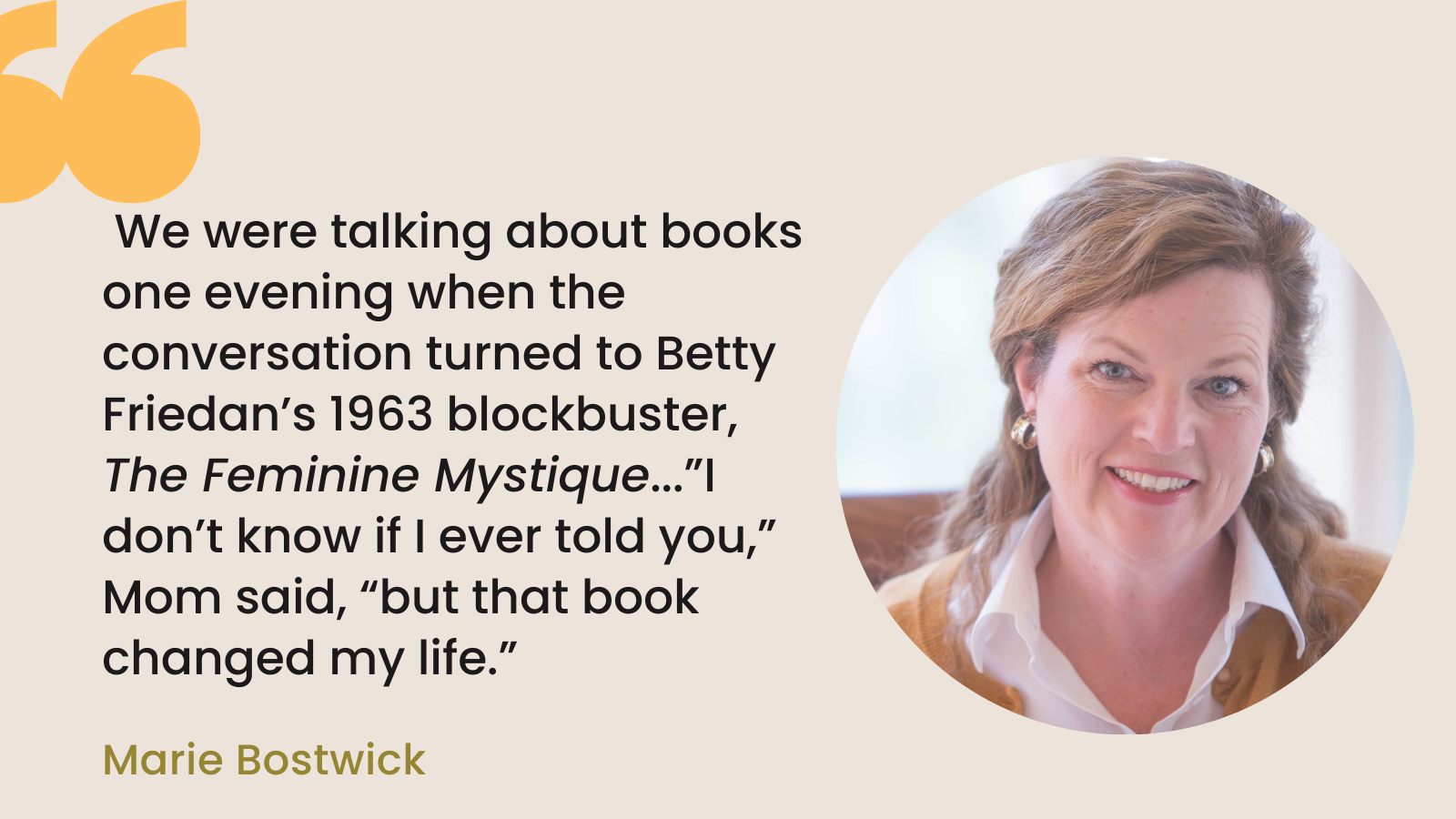 We discuss her new must-read novel about a group of women in a 1960s suburb whose lives are changed after reading The Feminine Mystique by Betty Friedan.